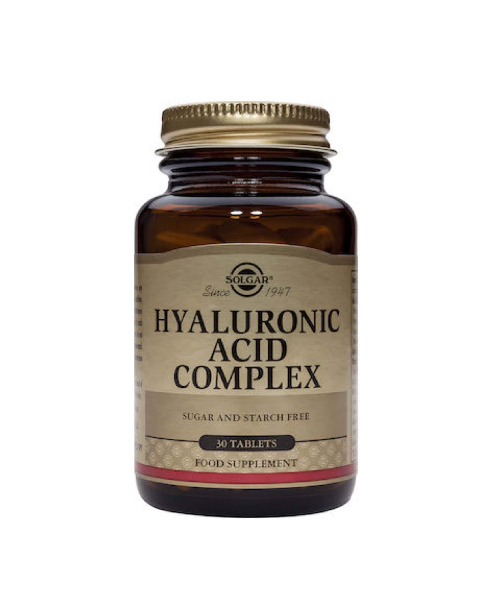 Συμπλήρωμα διατροφής με υαλουρονικό οξύ, μία φυσική ουσία που συντίθεται από το σώμα μας, η οποία έχει ως βασική λειτουργία την ενυδάτωση των ιστών και την συγκράτηση του νερού σε αυτούς. Έχει διαπιστωθεί ότι παίζει σημαντικό ρόλο στην ακεραιότητα και την ανάπλαση του δέρματος καθώς και την υγεία των αρθρώσεων. Τα συστατικά που περιέχει το Solgar Hyaluronic Acid Complex προστατεύουν το σώμα μας από την εσωτερική αφυδάτωση, προάγουν την ενυδάτωση, ελαστικότητα και απαλότητα του δέρματος και λειτουργούν αντιγηραντικά στο δέρμα αλλά και σε ολόκληρο τον οργανισμό.