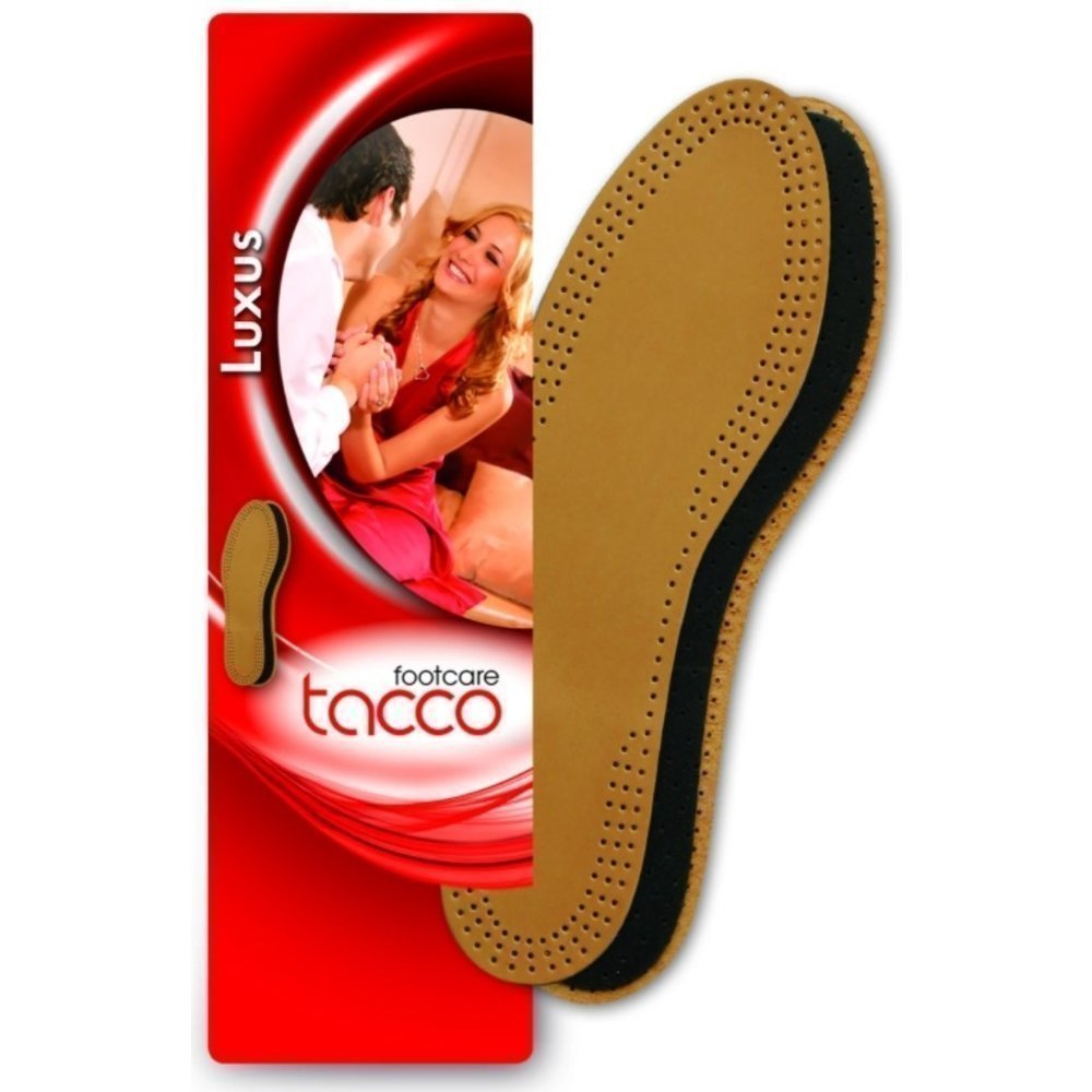 Το Tacco Luxus είναι μια μακριά σόλα με επιφάνεια κατασκευασμένη από οικολογικά μαυρισμένο δέρμα προβάτου και ένα μαλακό στρώμα RelaxFlex. Ένας ενσωματωμένος απορροφητής οσμής ενεργού άνθρακα αποτρέπει αποτελεσματικά την οσμή των ποδιών. Το Tacco Luxus είναι πολύ λεπτό και ταιριάζει σε κάθε παπούτσι.